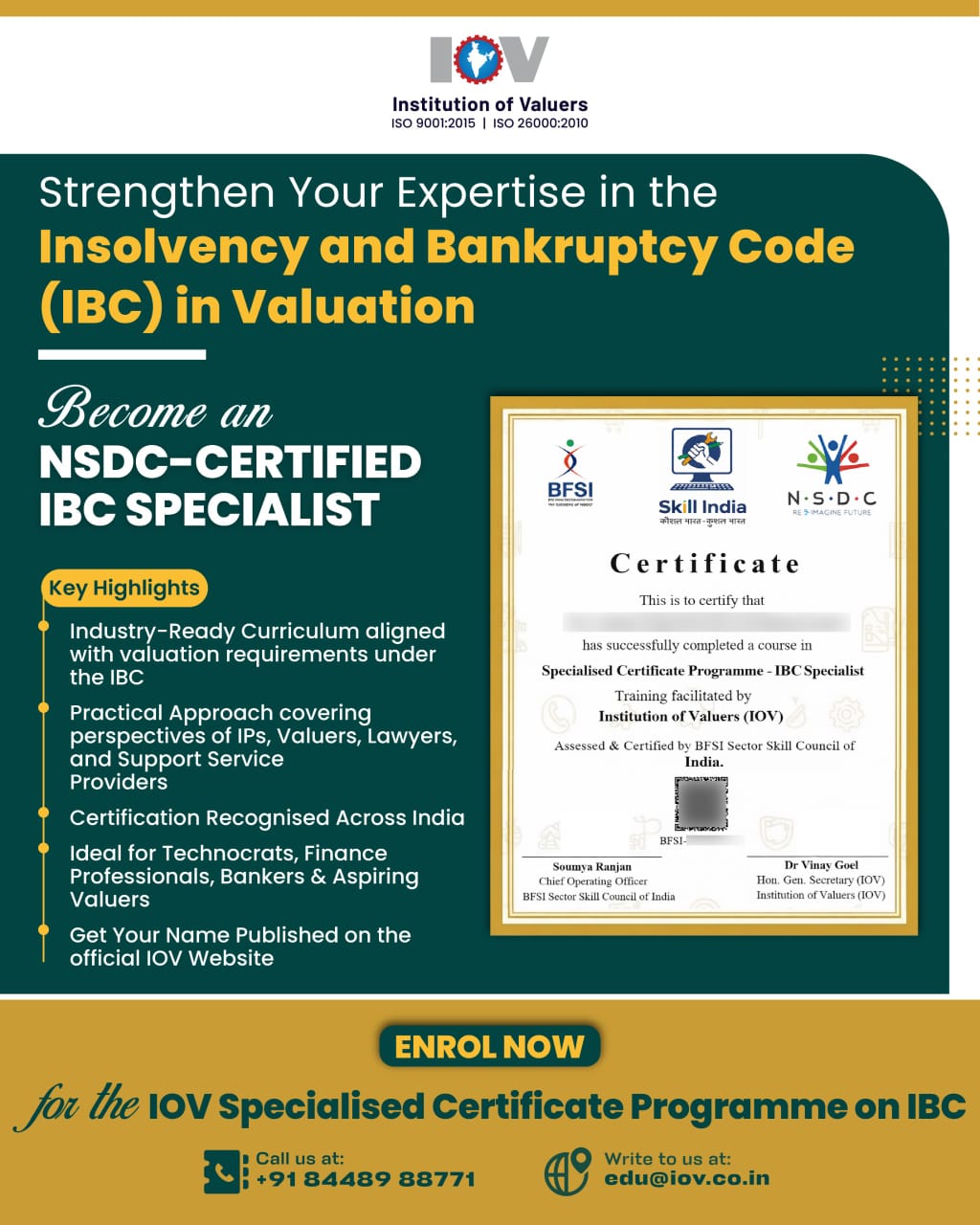 To help people understand and work within this system, the Institution of Valuers (IOV)—India's pioneer valuation organization—has launched a Specialized Certificate Programme on the Insolvency & Bankruptcy Code (IBC).
